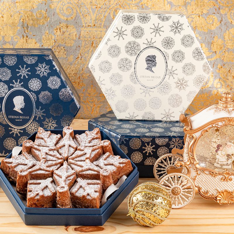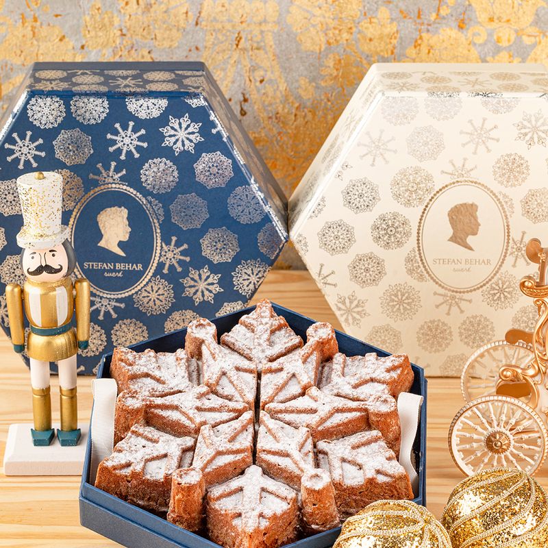 Se você é fã do nosso bolo de mel vai amar a novidade! Para esse Natal ele vem no formato de um lindo floco de neve em uma caixa especial