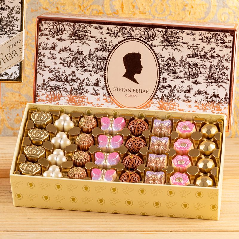 Atendendo à pedidos, Stefan desenhou essa caixa que vem com 8 variedades de bombons em maior quantidade.