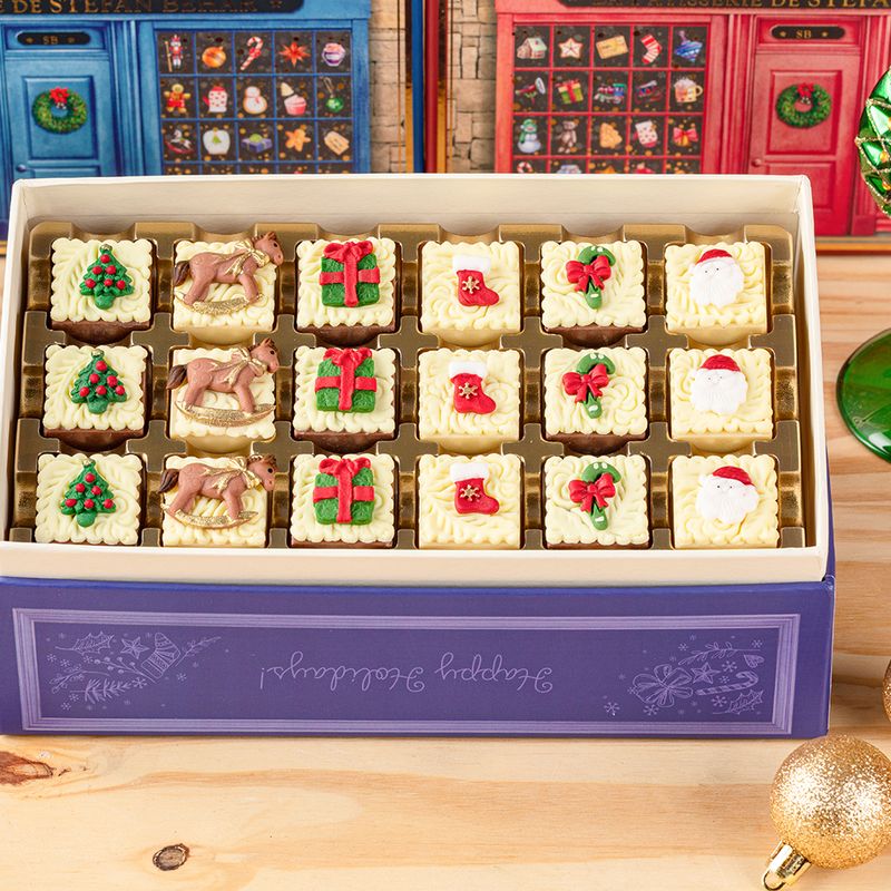 Uma caixa para encantar com 18 bombons decorados nos temas do Natal!