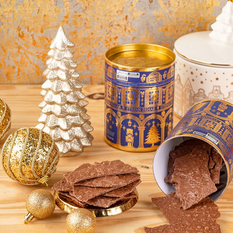 Nossas lascas são pedaços finíssimos de chocolate ao leite com um toque secreto e uma crocância marcante.