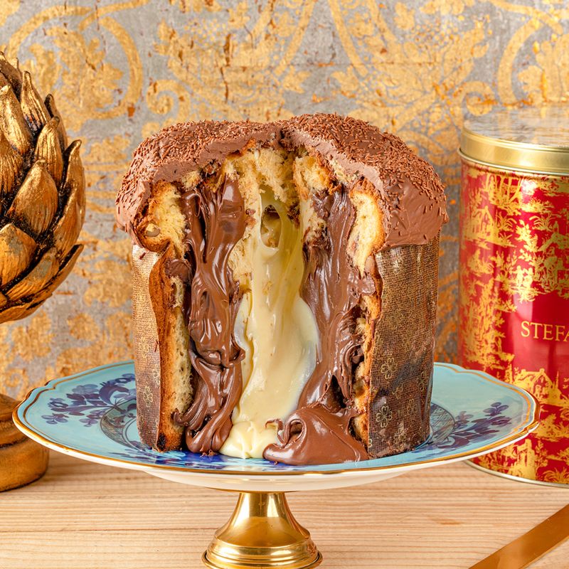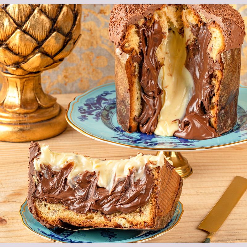 Massa molhadinha com gotas de chocolate e muito recheio de brigadeiro de leite ninho com Nutella e coberto com chocolate ao leite.